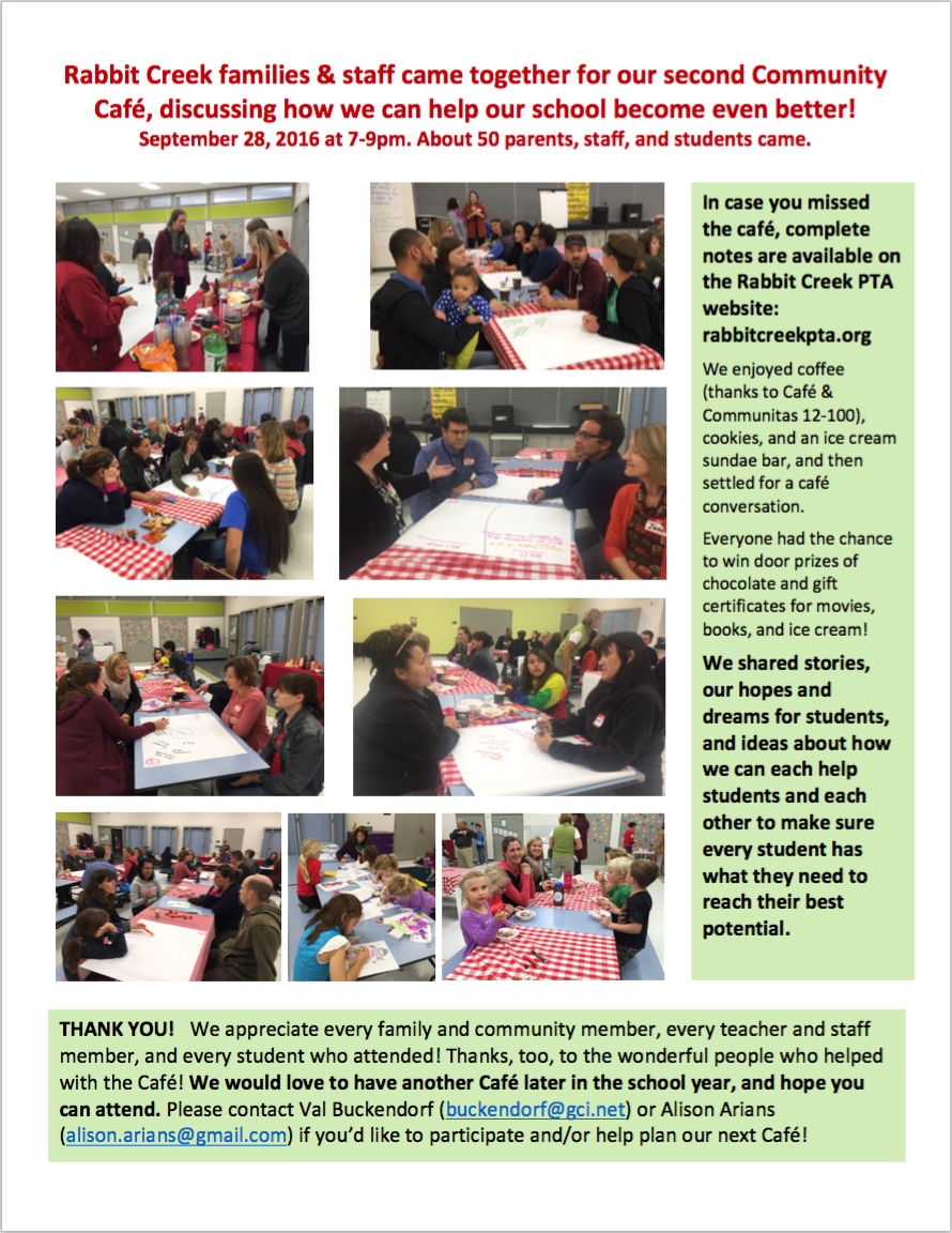 Photos from the recent Community Cafe at Rabbit Creek Elementary: